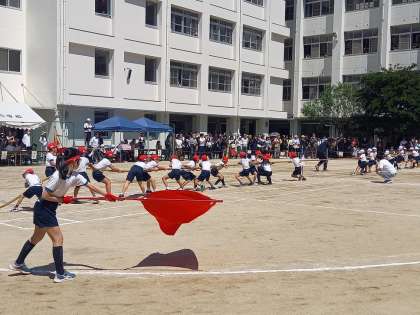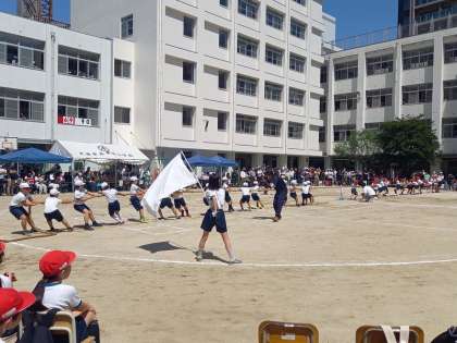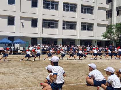 つなを引いている3・4年生はもちろんのこと、見ている他の学年の子どもたちも