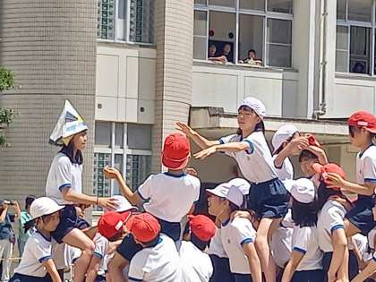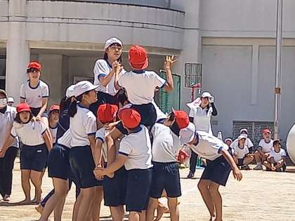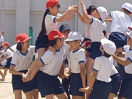 5・6年生の「騎馬戦」、団体戦、大将戦も大盛り上がりです!