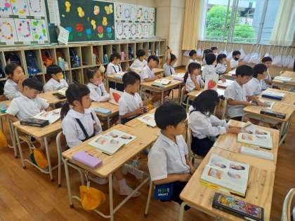 1年生は国語の時間に、はじめての「説明文」の学習となる「さとうとしお」の学習に入りました。