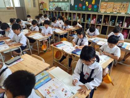 1年生は算数の時間に「たしざんのしき」の学習に入りました。