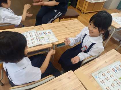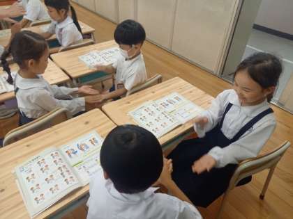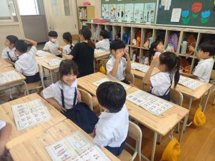 1年生は音楽の時間に「わらべうたであそぼう」の学習をしていました。