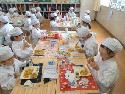 子どもたちの大好きなスパゲッティとカレーを組み合わせた献立とあって、子どもたちからは大好評でした!