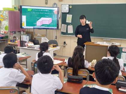 算数の時間に立体の体積の求め方について学習している5年生。
