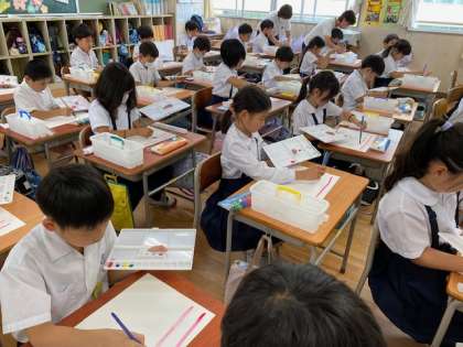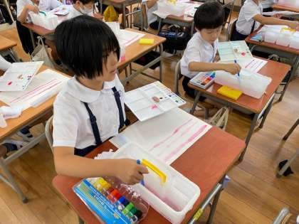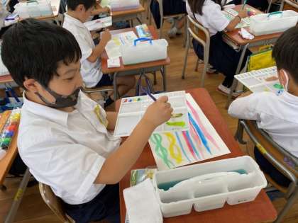 3年生は、図画工作の学習で初めて絵の具を使いました。