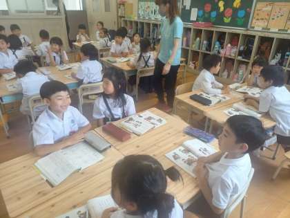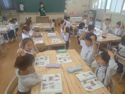 1年生は国語の時間に「きいてつたえよう」の学習をしていました。