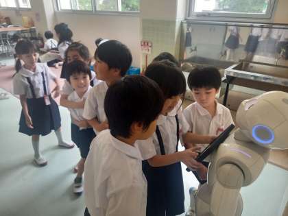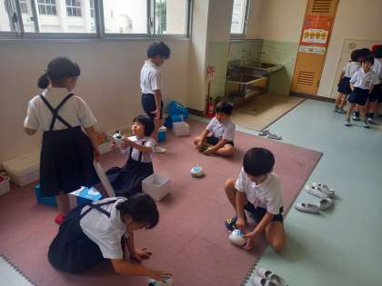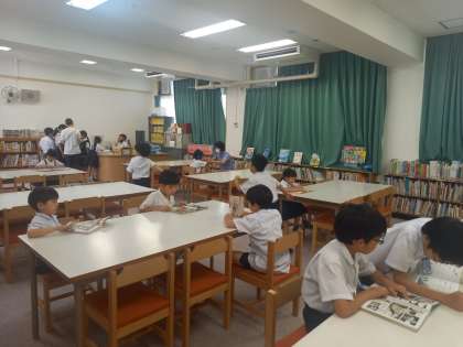運動場が使えない日の休み時間、子どもたちは教室で過ごすことになりますが、1年生、2年生は教室がある2階の職員室前スペースや図書室で過ごす子も多くいます。