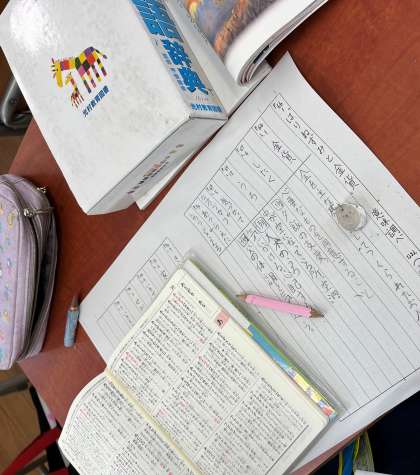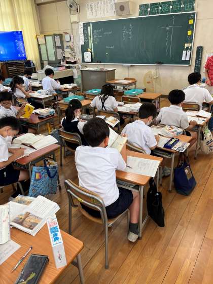 3年生は辞書で意味調べをしていました。国語科で学習をするときには必ずやります。インターネットですぐに何でも調べられる時代ですが、語彙を正確に増やしていくためには、今でも地道に調べながら理解していく作業が欠かせません。