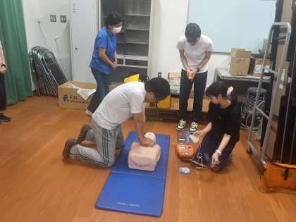 これから夏に向けて、海やプールなどで「水」とふれあう機会も多くなると思いますが、心臓マッサージ(胸骨圧迫)の方法やAEDの使い方を体験し、万が一に備えます。