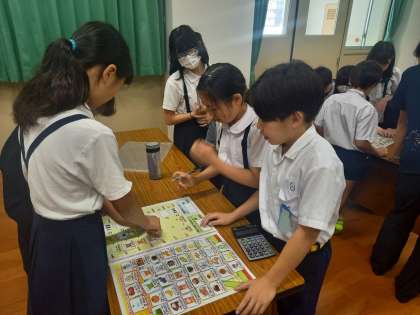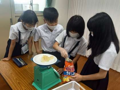 ふだん子どもたちが食べている「おやつ」について、実際どれだけのカロリーを摂取しているのか、また、必要な摂取量とはどれぐらいのものなのか、実際にスナック菓子を計量したり、カードを使ってシュミレーションをしてみたりしながら、「おやつ」の食べ方について考えました。