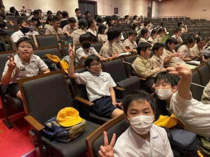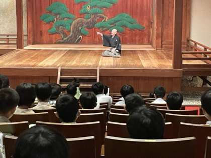 5年生の子どもたち、昨年に能楽『高砂』を教わる機会がありました。その貴重な体験をした際、熱心に教えて下さった先生と能楽堂にて嬉しい再会をしましたよ!先生も子どもたちの到着を楽しみに待っていて下さいました。