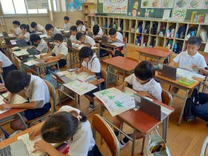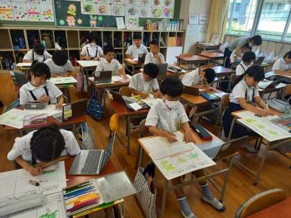 今日はその育ちの様子を端末のカメラで撮影し、観察日記をつけました。