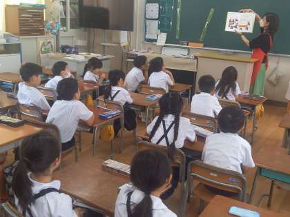 地域のボランティア「えことば」さんにお越しいただき、各学級に入って「絵本」の読み聞かせをしていただきました。