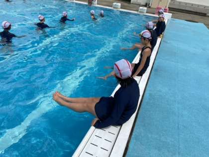 今日は、平泳ぎの特別授業として、山本先生と鮫島先生をお迎えしました。クロールは大体の子どもが泳ぐ形ができつつあります。平泳ぎについては、6年生にはしっかり泳げる人がいても、5年生はまだまだ初心者が多いので、今日は泳ぎのプロに足のかき方からしっかり教わりましたよ!