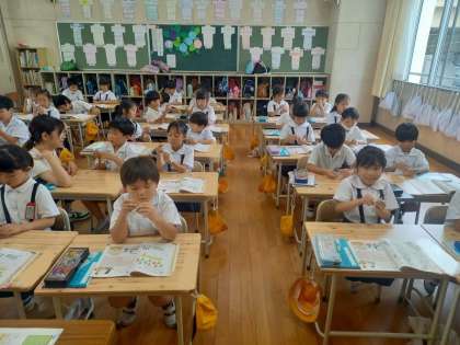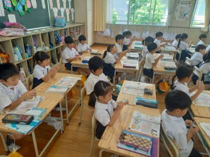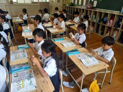 1年生が算数の時間に、「けいさんカード」を使った学習に取り組んでいました。