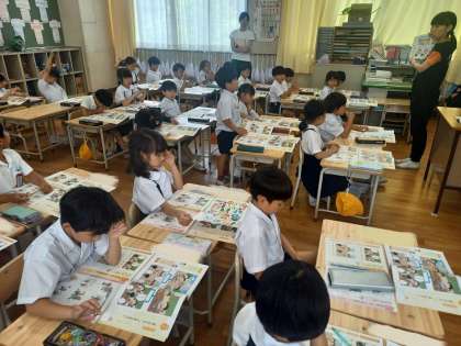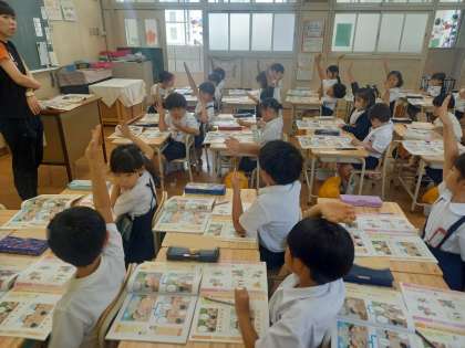 道徳の教科書を使って、普段の生活の中で「ありがとう」や「ごめんなさい」はどんなときに使うのか、また、「ありがとう」や「ごめんなさい」を言ってもらった人は、どんな気持ちになるのか、みんなで一緒に考えました。