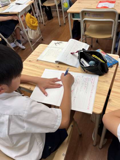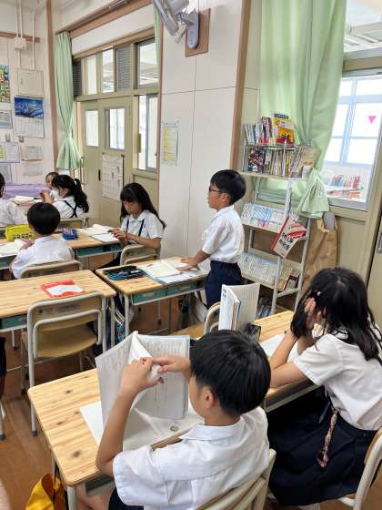 国語の教科書ではもう定番になりつつある「風切るつばさ」を6年生が学習していました。理不尽な状況や信頼関係が揺らぐような心理面の描写はさすが6年生の教材だと思わされるものです。本校の児童もその状況を読み解きながら、様々な場面の解釈や自身の考えを発表していました。