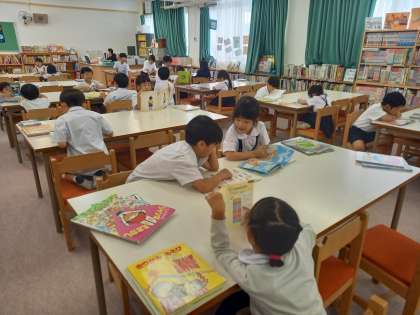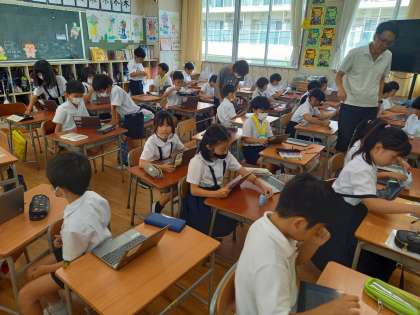 各学年、1学期のまとめをしたり、本や端末を使った学習をしたりしていました。