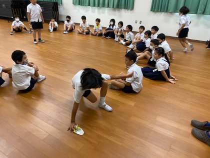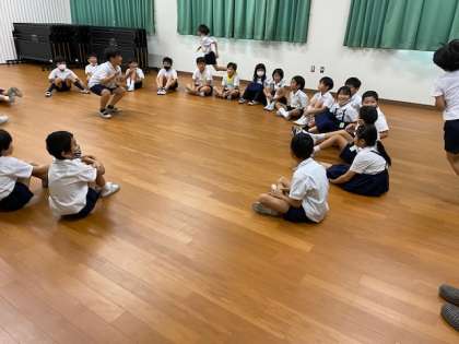 3年生は、多目的室で「ハンカチ落とし」をして盛り上がっていました。初めての子も、ゲームをするうちにだんだんルールが分かってきたようです。1学期最終日、みんなで楽しく過ごすことができました。