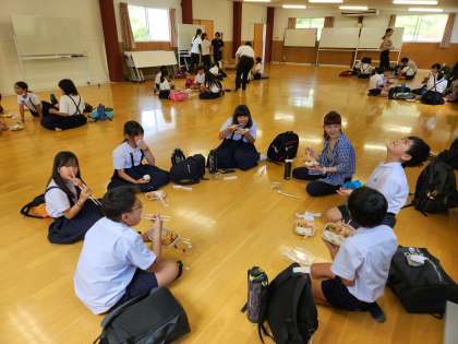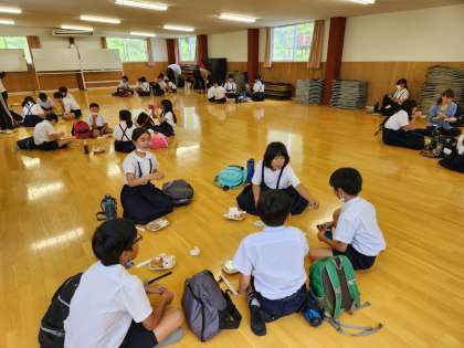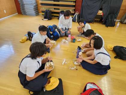 高原で食べる予定でしたが、日差しが強いため、お宿の中の涼しい場所でいただきました。