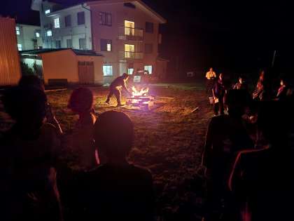 最後は静かに、みんなで「キャンプファイヤー」の余韻を楽しみます。