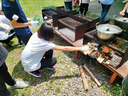 カレーづくりの合間をぬって、たき火の火でマシュマロを焼いてみました!