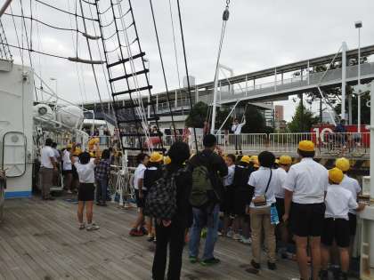 予定通り大阪天保山岸壁より出港しました。子どもたち29人元気いっぱいです。