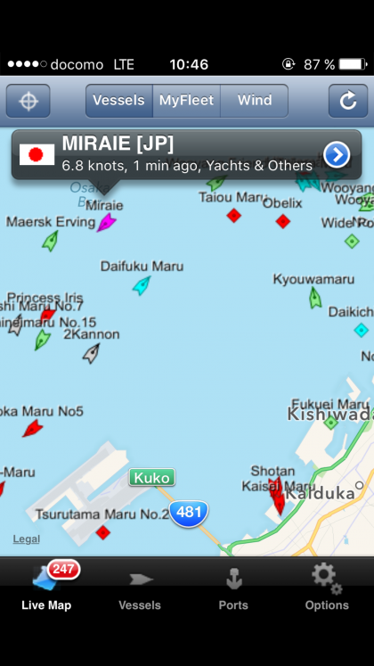 洲本までは約31マイル。6ノットで進んでも5時間かかります。今はスピードを出していますね。