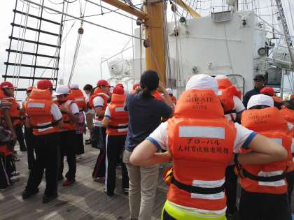 船上での避難訓練です。命を守ることの大切さを厳しさを学びます。その後、休憩。