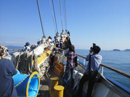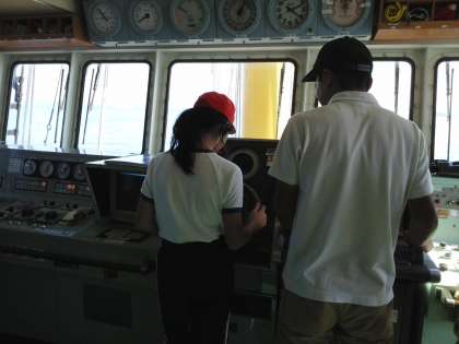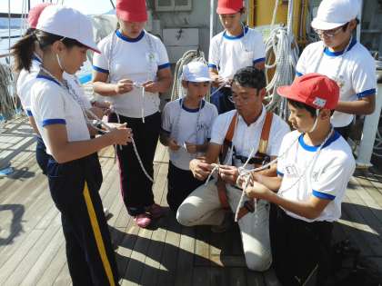 3つの班に分かれ、順番に活動します。操船は、本当に舵通り船が動きます。