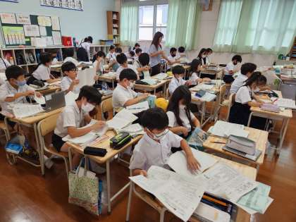 夏休みの宿題の答え合わせや、提出物の確認をしていました。