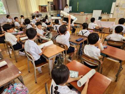 2年生も提出物の確認を行った後、夏休みに作った作品の紹介が行われました。