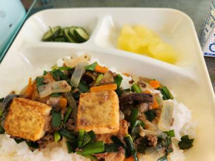 ごはんがすすむピリ辛味の「マーボー厚揚げ丼」は、子どもたちからも大好評でした!