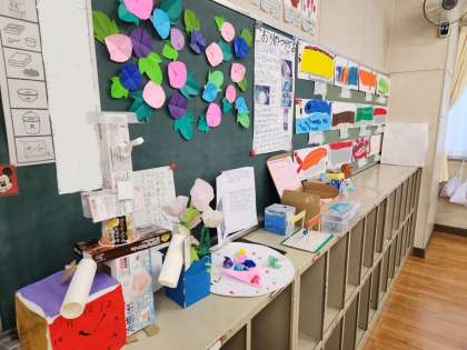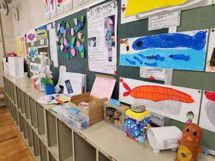 絵画作品はコンクールへ、工作や自由研究は教室に展示しています。