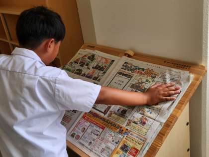 さっそく、ボールや竹馬、一輪車などを使って遊ぶ子や、屋内で本や新聞などを読みながら過ごす子と、それぞれが思い思いに休み時間を過ごしました。