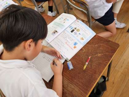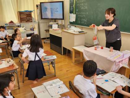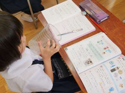 2年生は算数の時間に「水のかさをはかろう」の学習をしています。