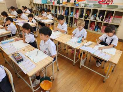 1年生は、今日からいよいよ「かんじ」の学習が始まりました。