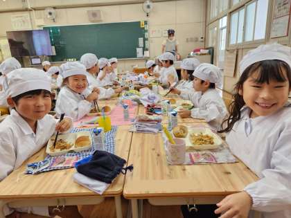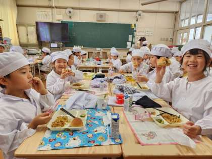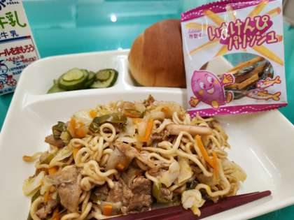 以前は「アーモンドフィッシュ」が提供されていましたが、アレルギー対応として「いもけんぴ」が採用されることになりました。ほんのり甘く歯ごたえのある食感が、子どもたちからも好評でした!