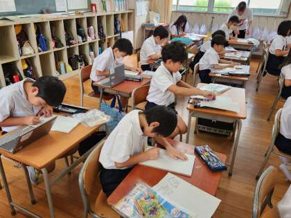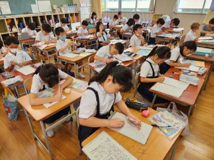 3年生は図画工作の時間、「コリントゲーム」の制作が始まりました。
