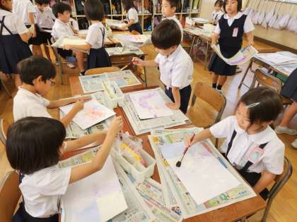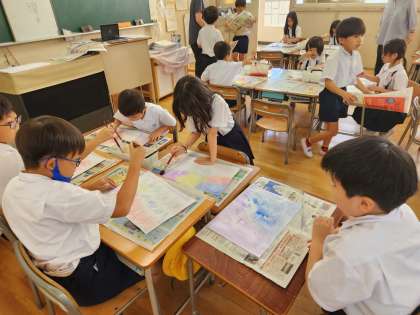 2年生は図画工作の時間に「ふしぎないきもの」の絵を描いています。