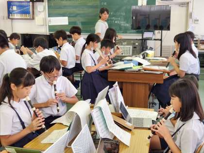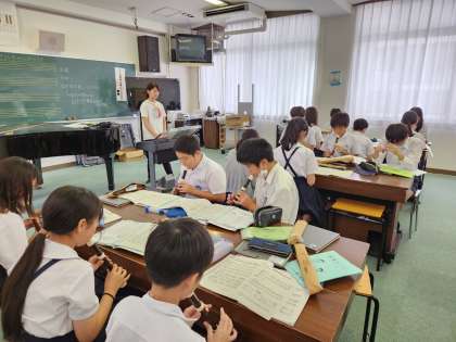 音楽室で6年生がリコーダーの練習に取り組んでいました。