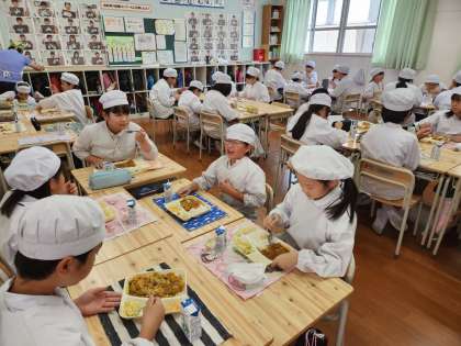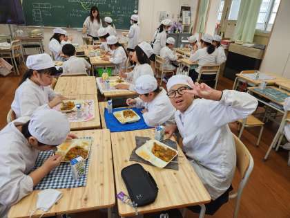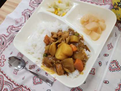 今日の「チキンカレーライス」には、調理員さんが特別に入れてくださっている「ラッキーにんじん」に加えて、今日は「ラッキーじゃがいも」も入れてくださいました!