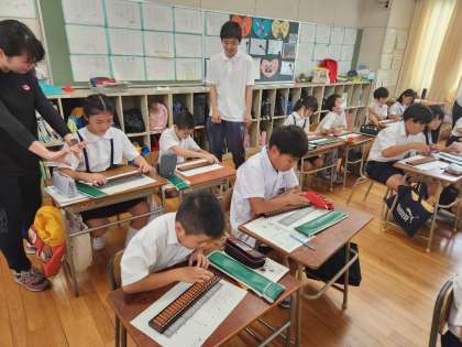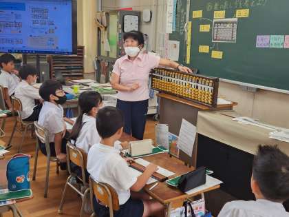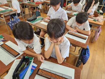 4年生は算数の時間に「そろばん」の学習が始まりました。