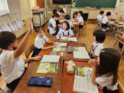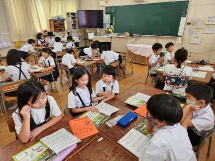 2年生は音楽の時間に「森のたんけんたい」という曲を学習していました。