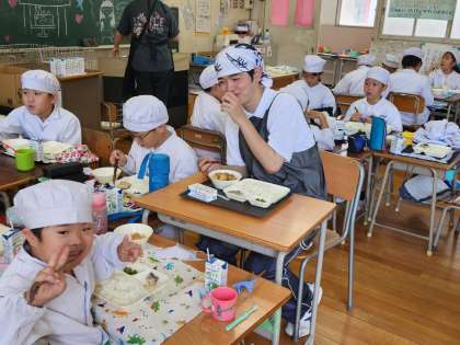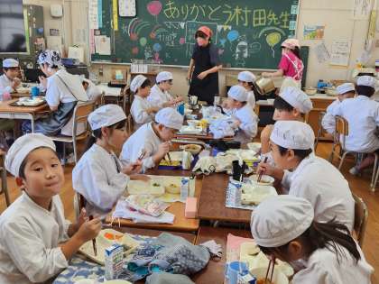 4年生で教育実習を行っていた学生さんは、今日が最後の給食となります。