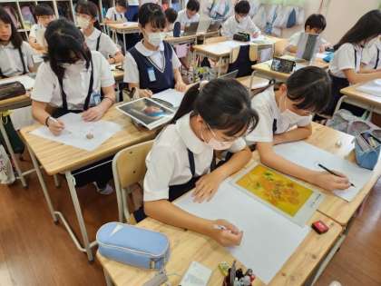 有名な絵画作品をもとに、自分の発想を付け加えたオリジナリティ作品を制作していきます。