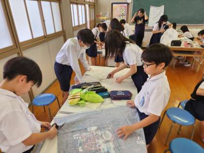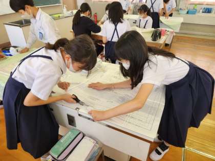 6年生は家庭科の時間に「エプロンづくり」の実習が始まりました。