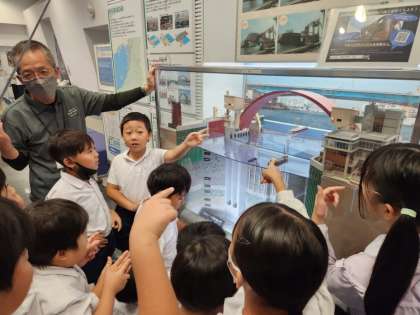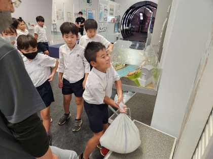 実際に水門の模型を見たり操作をしたり、土のうの重さを体験したりしました。