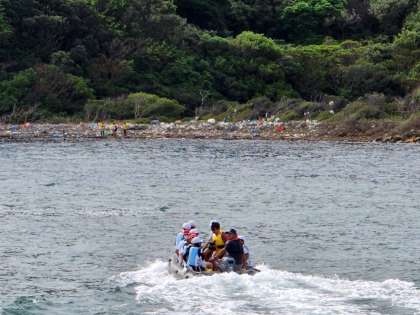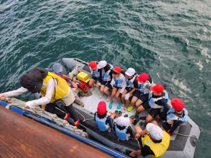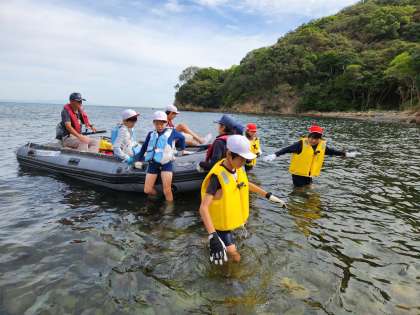 風が穏やかで、予報も良かったため、地ノ島に上陸し、ビーチコーミングを行います。