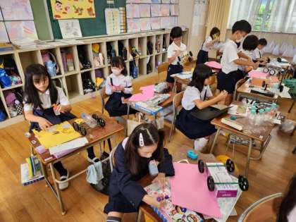 2年生は図画工作の時間に「おもちゃ」の制作に取りかかりました。
