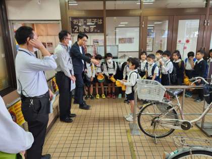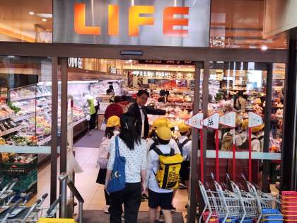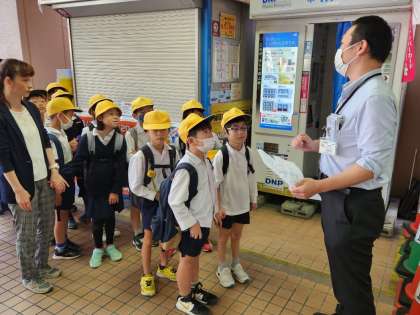 スーパー「ライフ」での社会見学、入店時の様子です。